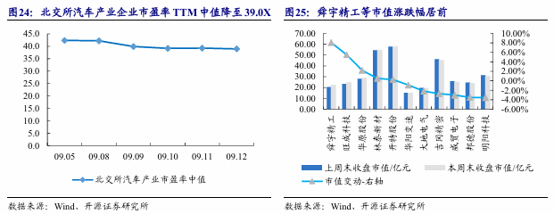 本周,从估值再现看,北交所汽车财产市盈率TTM中值降至39.0X。从本周个股市值再现来看,舜宇精工+8.07%、旺成科技+5.51%、华原股份+2.21%布列市值涨跌幅前三甲。(汽车公司种别:包括汽车硬件、汽车电子、汽车整车制作、汽车资料、外里饰策画、后墟市效劳等细分行业)