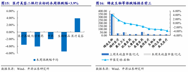 医药生物行业本周市盈率中值降至42.2X,锦波生物+3.90%、锦好医疗+1.47%、康乐卫士+0.06%涨跌幅排名前三。(医药生物包括医疗东西、化学制药、中药、生物成品、医疗美容)