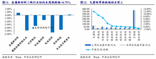 化工新材行业本周市盈率中值降至45.7X,戈碧迦+12.05%、新威凌+9.14%、华密新材+6.99%涨跌幅排名前三。(化工新材包括金属新资料、橡胶和塑料成品业、化学成品、非金属资料、电池资料、纺织制作、专业身手效劳业等二级行业)
